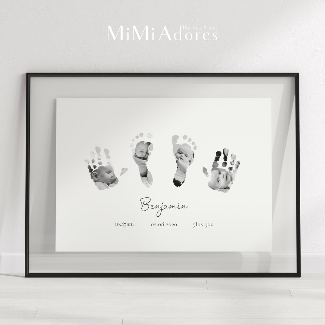 The ultimate baby/toddler/child keepsake! We think this is the perfect pairing of memories! Your favourite photos are expertly incorporated inside your little one's actual handprint/footprint! So that you can capture a moment in time, a truly one of a kind keepsake to treasure forever.
